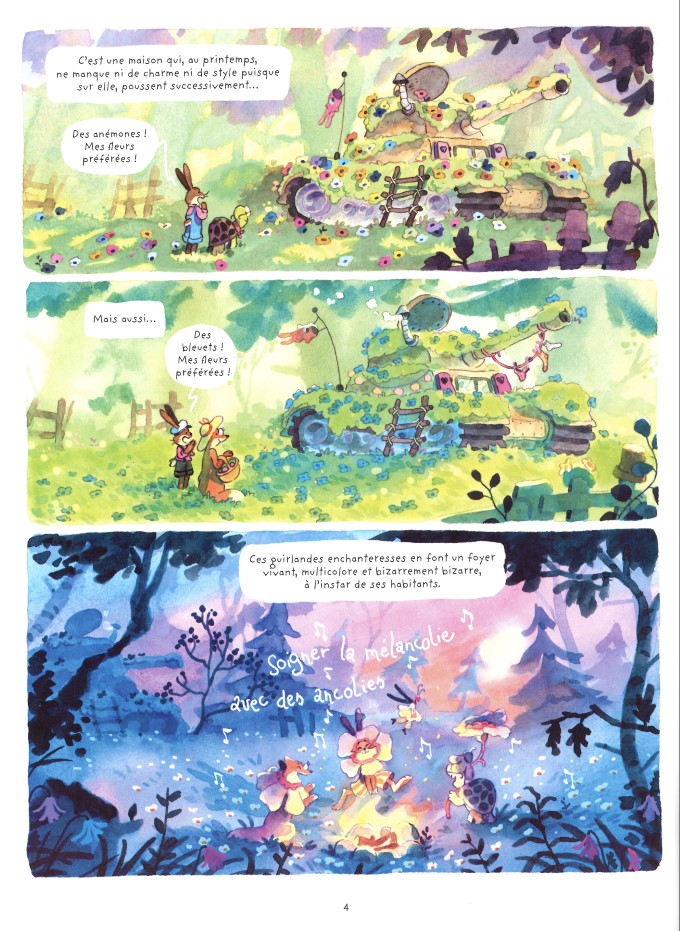 Bill peut se reposer sur ses deux oreilles. Pas besoin d’avoir un œil sur les alentours de la maison, les oiseaux veillent pour lui. Bill a de plus en plus des comportements d’humain. Il sifflote, prend du café dans une tasse, lit le journal, … Il en oublierait presque qu’il est un animal, sauvage comme le convainc la tortue Caroline. Mais s’il se frotte les pattes sur le paillasson devant la porte d’entrée, ce n’est pas pour avoir les pattes propres dans la maison, c’est parce qu’il tente d’extraire les croquettes coincées dedans. Tout ce qui a goût de viande, comme les os, c’est bien meilleur que les brocolis. Si on lui demande ce qu’il souhaite qu’on lui cuisine, on devine aisément la réponse.