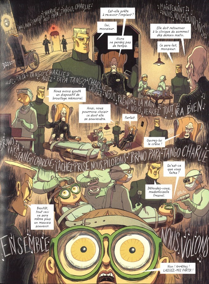 © Hamo, Suarez – Nathan Si l’histoire de Corentin Tréguier se lit comme un feuilleton, c’est parce qu’elle a été conçue comme un feuilleton. Cette histoire, comme la précédente, est issue de la série de podcasts éponyme de France Culture. Dix épisodes, dix chapitres dans l’album, Emmanuel Suarez adapte son récit très dialogué. C’est là que l’on voit que la radio et la bande dessinée se rejoignent dans l’art du dialogue. Il y en a beaucoup ici mais ça se lit avec grande fluidité. Dans Corentin Tréguier, tout passe par les joutes oratoires et la correspondance épistolaire. Il n’y a quasiment aucun récitatif. Avec son dessin d’un réalisme souple, Hamo se classe dans une gamme d’auteurs comme Xavier Fourquemin. Avec des pupilles rondes et fines, Hamo parvient à donner l’état d’esprit et le caractère de chacun des personnages au premier coup d’œil. Il suffit de regarder les portraits de la galerie en fin d’album pour le comprendre.