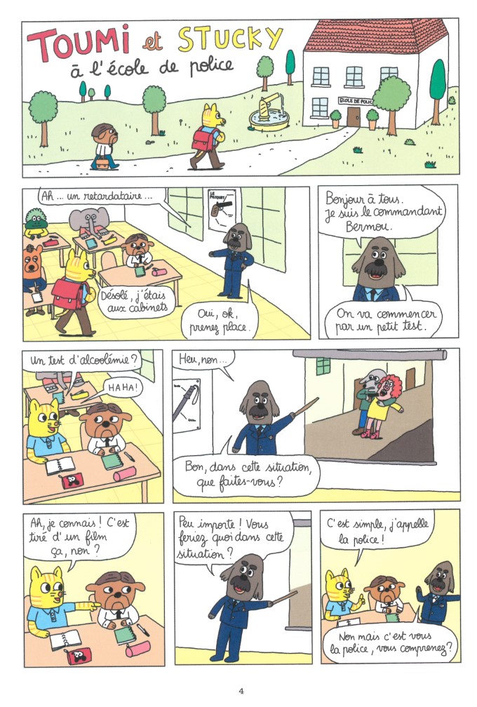 Le commissaire Toumi est une parodie des enquêteurs flegmatiques des années 80. Le chien flic en imper, on ne peut plus fin limier, débarque toujours la cigarette au museau. Il a certainement vu tous les épisodes de Columbo et du Commissaire Maigret. Aussi rapide que Derrick, il est flanqué d’un adjoint doté d’un humour à toutes épreuves. Quant aux suspects, aux coupables et aux personnages de passage, ils ont chacun leur particularité, du serveur de restaurant désarmant au fan de Carlos.