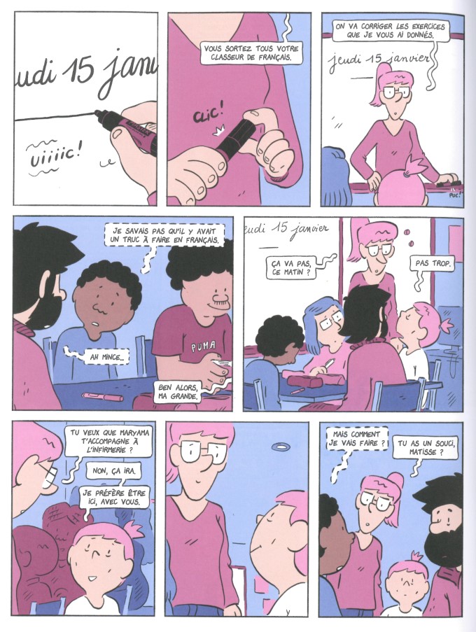 Fabien Toulmé maîtrise son sujet. Sa fille Julia est suivie par une AESH. L’auteur s’est donc trouvé confronté aux promesses de l’institution et aux limites des aides apportées. Pour l’écriture de ce projet, qui à la base devait être un film, il a passé du temps à l’Ulis du collège Aliénor d’Aquitaine à Bordeaux, en immersion.