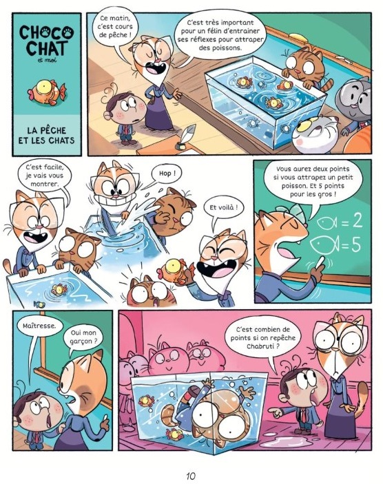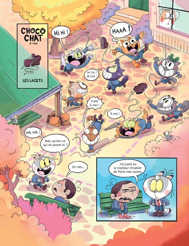 30 millions d’amis pourrait avoir une nouvelle mascotte en la personne de Chocochat. En prenant le contrepied de la vie réelle, Alexandre Arlène et Fabien Öckto Lambert cassent les codes pour amener leurs personnages et leurs lecteurs dans un monde parallèle où les rôles sont redistribués. Le pire, c’est qu’on y croit à fond. Comme dans Migali, l’autre série du duo, des cases pleines planches ou des planches sans cases alternent entre les gags. Le dessinateur s’y éclate dans des compositions originales qui démontrent que ce n’est pas parce qu’on fait de la bande dessinée pour enfants qu’il ne faut pas leur offrir des plats de grande qualité. On reprendra bien un peu de pâtée à la sardine !