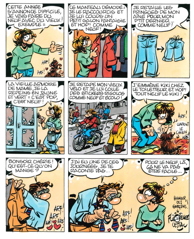 La deuxième partie est une série de gags en une planche. Essayage de robes (plutôt 44 que 38), rencontre avec la génération Z, épilation, gourou, résolutions, drague lourdingue et mains baladeuses, les enfants, le couple, la maison, soit on est à moment donné une Noémie, soit on a l’une d’entre elles à la maison.