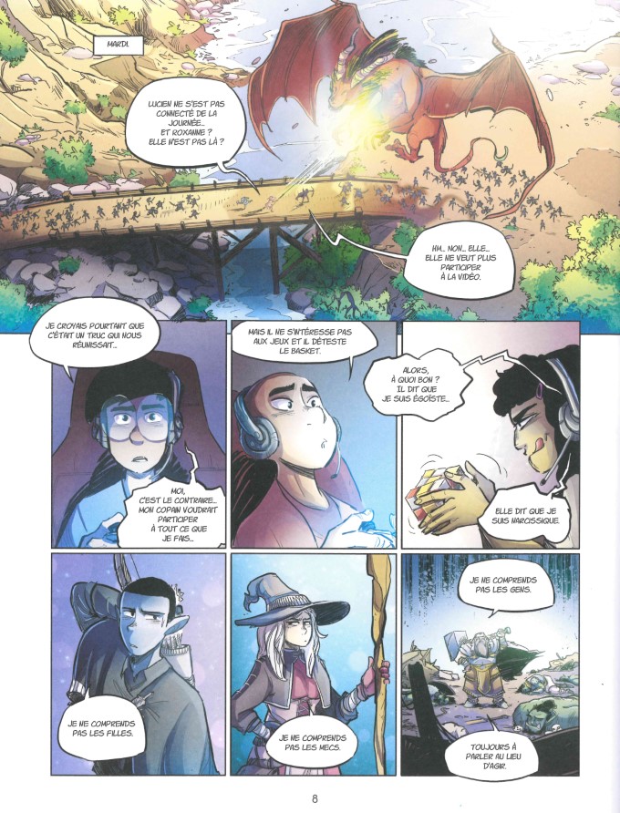 L’adolescence, c’est le temps des « je t’aime moi non plus » et de la route compliquée vers la vie d’adulte. Le thème est cher à Kid Toussaint. On le retrouve dans bon nombre de ses séries comme Magic 7, Télémaque, Les héricornes et par-dessus tout la remarquable série Elles. Le scénariste a ceci de particulier qu’il parle aux adolescents par leur propre biais, avec leurs propres armes. C’est ce qui fait la force de son traitement. Accompagné aux couleurs par Elsa Chanal, le dessinateur James Christ accentue ce point de vue humain et humaniste, en focalisant sur les visages, en plaçant au final relativement peu de décors.