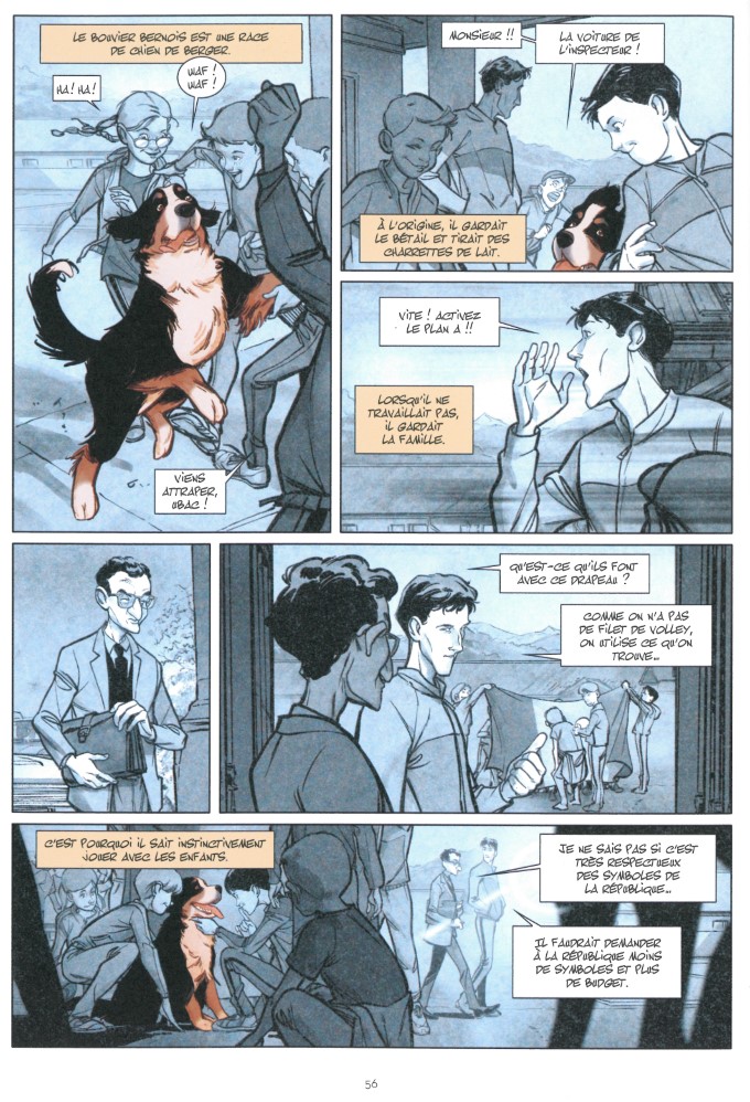 Si un travail est à souligner particulièrement dans cet album, c’est celui de Sedyas. Et pas seulement dans les rochers blancs-bleus aux reflets jaunes d’un soleil éblouissant les yeux. Dans des planches grisâtres, seul Ubac apparaît en couleurs. La scène des retrouvailles avec Mathilde est particulièrement bien pensée dans ce sens où Sedyas montre comment l’animal illumine la vie des gens qui croisent sa route.