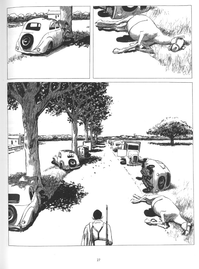 Dans toute une première partie, Amédée Videgrain est un soldat, uniquement un soldat, ou presque. Les événements tragiques qui s’enchaînent vont lui rappeler sa condition d’humain. Si même les gradés baissent les bras, à quoi bon se battre ? Dans la deuxième partie sous pavillon nazi, Videgrain ne se contente plus d’être un simple spectateur. Il avait… Il a… une vie. Il espère bien qu’un jour les choses rentreront dans l’ordre. Après avoir retrouvé ses camarades, il faut voir dans quel état moral, il va devoir prendre son destin en main pour retrouver sa famille. En racontant la guerre d’Amédée, Pascal Rabaté place le lecteur dans la peau d’un quidam qui se retrouve en situation de guerre et de défaite sur tous les fronts. Et nous, qu’aurions nous fait ? Pour Amédée, avant tout, l’objectif est de survivre. Il le dit lui-même en quittant une maison abandonnée dans laquelle il s’était réfugié : « La survie oui, le pillage non ! »