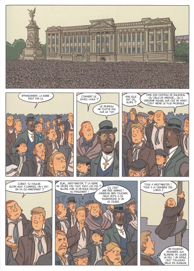 L’improbable revolution de Corentin Tréguier au Royaume-Uni, l’album possède un titre qui ne pouvait pas mieux le résumer. Les auteurs offrent un bon moment d’aventure populaire avec un grand A, et qui plus est, historique. Le final laisse augurer d’un prochain épisode en Amérique du Sud et c’est tant mieux.