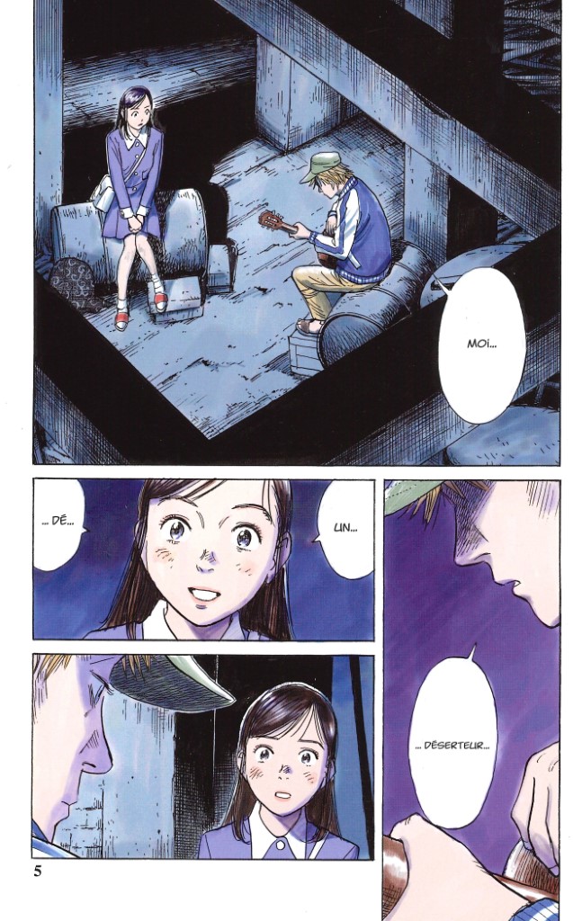 Nous sommes en 1968. Asa a maintenant 21 ans. Elle vient de rencontrer un charmant jeune homme qui chante une charmante chanson avec une charmante guitare dans un recoin caché d’une rue sordide. Lui ne parle qu’anglais, elle le japonais. Elle parvient à baragouiner quelques mots dans la langue de Shakespeare. Elle comprend qu’il a déserté les troupes américaines pour éviter de faire la guerre au Vietnam. Il est caché dans l’appartement d’une femme qui n’apprécie pas trop la présence d’Asa. Elle le ramène manu militari, c’est le cas de le dire, à domicile pour qu’il ne se fasse pas repérer. La situation laisse Asa abasourdie. Elle laisse sur place un message où elle écrit qu’elle sera là tous les jours à 19 h pour l’attendre.