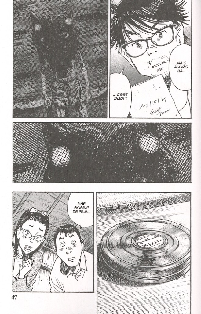 Forces de l’ordre, politiciens, journalistes, anciens flics, curieux, ce monstre, c’est Charlie ou quoi ? Tout le monde le recherche. En quatre ans, Asa a effectué 104 sorties aériennes. Elle a affronté la bête à 19 reprises et lui a tiré sept fois dessus avec des roquettes. Est-ce grâce à elle ? En tous cas, la bête n’a jamais atteint le rivage. Naoki Urasawa, osons-le le dire, le meilleur mangaka du monde, poursuit le feuilleton Asadora ! Il applique la méthode « Jaws – Les dents de la mer ». Le monstre, comme le requin, tout le monde en parle mais on ne le voit quasiment pas. Urasawa mêle savamment les scènes où il en est question avec la vie d’Asa, qui évolue. Elle a bien grandi. Elle est adulte et gère sa société d’aviation. Aujourd’hui, elle tombe amoureuse. Laissera-t-elle partir à la guerre River, l’homme qu’elle aime, et avec qui elle n’a pas encore conclu ?