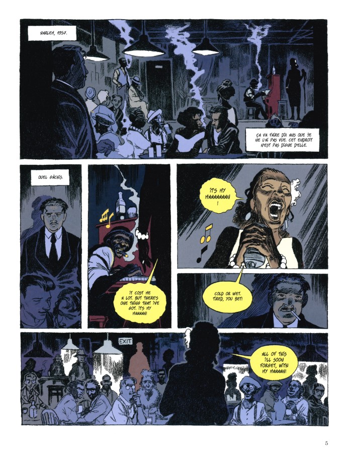 A.Dan met musicalement l’aventure de cette chanson en image. C’est bien cette chanson qui est la véritable héroïne de l’histoire. Ce n’est pas Billie. Ce n’est pas Abel. C’est bien autour d’elle que tout tourne. Bien sûr, on est au cœur des préoccupations et des tourments de son auteur ; bien sûr, on est au cœur des affres et des déboires de son interprète. Mais c’est bien elle, la chanson, qui donne le ton. Des petits clubs de jazz miteux de Harlem jusqu’au Carnegie Hall, A.Dan dessine le parcours de « Strange Fruit », dans une ambiance tout aussi jazzy que parfois glauque. La couverture, sublime, sur laquelle Abel marche dans la rue, la nuit, et que l’ombre lumineuse de Billie éclaire le mur de briques, résume parfaitement le ton du récit.