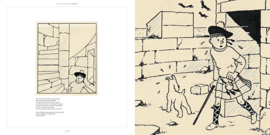 Dans les coulisses de L’île noire, contrairement à l’épisode précédent aux lieux imaginaires, on retrouve Tintin dans des décors et des pays existants. Il va franchir la Manche d’Ostende à Douvres, avec Milou, alors que le petit chien n’aurait pas dû pouvoir le faire à cause des règles sanitaires en vigueur pour les animaux. Là-bas, ils traverseront des villages fictifs et de réels décors inspirés de cartes postales, des falaises d’Ecclessbourne aux maisons typiques du Sussex. Le terrible Docteur Müller fait son apparition, ainsi que, bien avant les Bijoux, une pie voleuse… de clé de garage de pompiers. Un extrait d’un carnet de notes de Hergé montre comment l’auteur préparait une scène. On profite des incroyables illustrations hors texte intégrée à l’album Casterman de 1938. On remarque les différences, notamment au niveau des véhicules, entre les différentes éditions, car, de tous les albums, L’île Noire est celui qui a connu le plus de refontes.