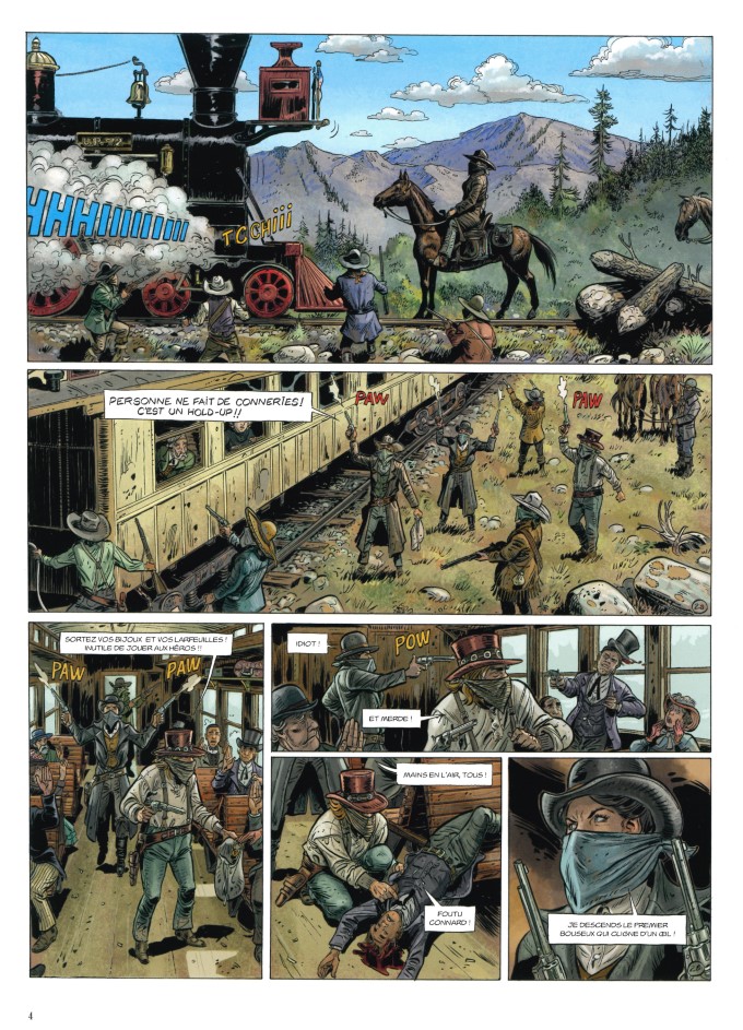 La relative quiétude de la ville ne va pas tarder à voler en éclats. Voici que débarquent Charles, Catherine et leur oncle Louis. Ils ont racheté le ranch W et viennent s’installer dans un coin isolé de la commune pour élever dix têtes de bêtes à cornes. La population ne se doute pas que c’est ce petit groupe qui, quelques jours plus tôt, a braqué un train en compagnie d’autres desperados, tuant allégrement quiconque oserait les empêcher de repartir avec le contenu du coffre-fort. Ce qu’eux, les bandits, n’avaient pas prévu, c’est que Cath allait retrouver dans la rue quelqu’un dont elle a bien l’intention de se venger. Le problème, c’est que ce n’est pas n’importe qui dans la ville.