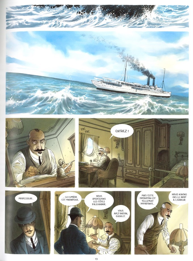 Basé sur les mémoires d’Hermentaire, La danseuse aux dents noires est scénarisée par les propres petits-enfants du chirurgien. Certains cartouches sont des reproductions in extenso de son carnet de voyage. L’homme va devoir accomplir une mission au service de l’aura de la France. Il ne se doutait pas qu’il allait se trouver au milieu d’un nid d’espion. Mais ça, c’est pour la dramaturgie du récit. Le fonds historique est néanmoins bel et bien véridique. Le cahier documentaire en fin d’album démêle le vrai du faux, mais on a tellement envie de croire en tout. On est vraiment dans un principe similaire à l’adage : Si la légende est plus belle que la réalité, alors écrivons la légende. Les photos de l’aïeul et de ses souvenirs, ainsi que celles du Roi, immergent dans l’époque. Ça en est presque troublant. On en apprend également plus sur ces « dents noires », qui étaient réellement teintés pour devenir des outils de séduction.
