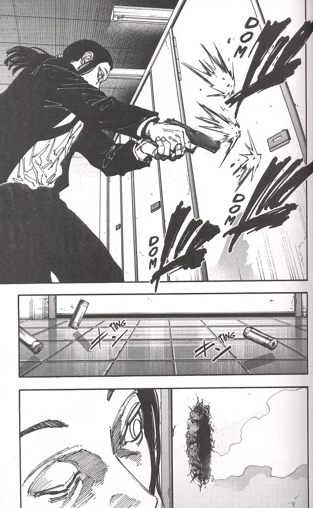 Comme dans le volume précédent, Sakamoto apparaît très peu. Les lecteurs perspicaces auront remarqué qu’il a un petit peu maigri. Cela est dû aux remarques grossophobes des lecteurs duWeekly Shonen Jump qui lui trouvaient trop d’embonpoint.