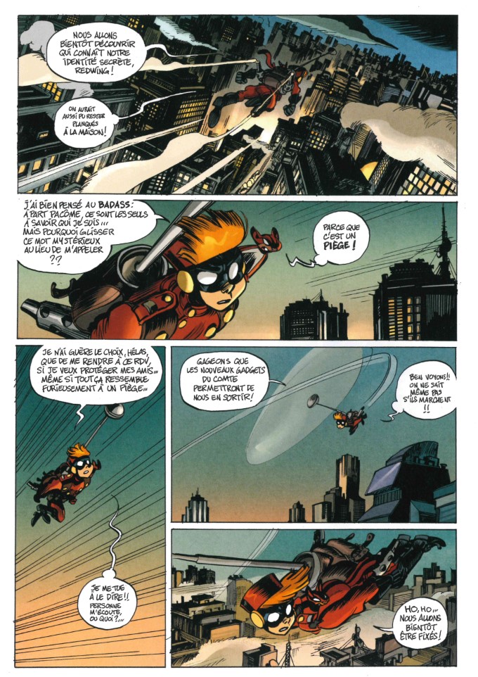 Spirou est inquiet. Quelqu’un aurait-il découvert que SuperGroom et lui n’étaient qu’une seule et même personne ? C’est en tous cas ce que laisse supposer la lettre qu’il trouve posée sur la table de sa salle de séjour. « Supergroom ! Rdv ce soir dans le ciel de Nova Brussels. (Ne prévenez aucun de vos amis, si vous tenez à eux.) ». Le soir même, notre (super)héros vole dans le ciel de la capitale belge accompagné de son fidèle écureuil lui aussi masqué : Redwing, alias Spip. File-t-il vers un piège ? Il n’a pas d’autre choix que de se rendre à ce rendez-vous s’il veut protéger ses amis.