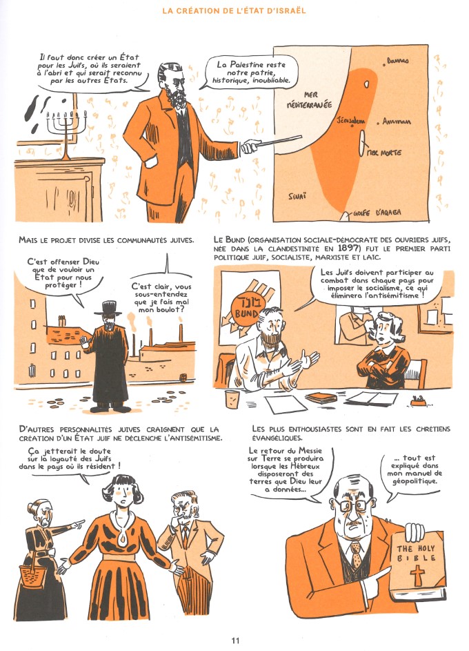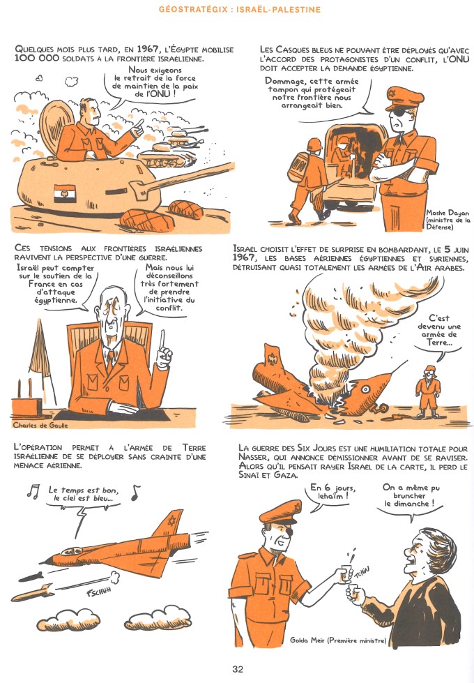 Comme dans son podcast éponyme, Pascal Boniface nous aide à comprendre le monde. S’il y a une situation bien compliquée, c’est certainement celle de ce conflit interminable. Avec des scènes courtes et le graphisme clair et sans fioritures de Tommy, cet album de la collection Géostratégix permet d’y voir un peu plus clair dans l’interminable conflit israélo-palestinien.