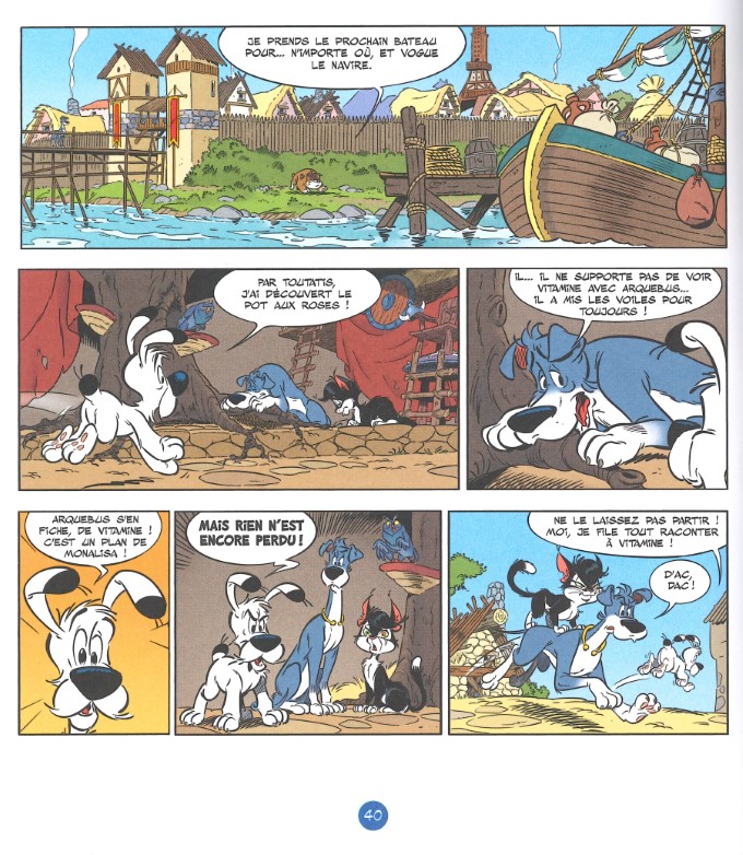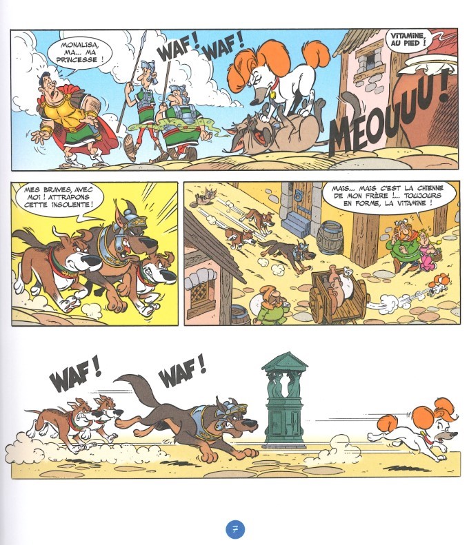 Padgachix est en manque de Vitamine. Ce n’est pas qu’il manque de force, c’est qu’il en pince pour la petite chienne d’Homéopatix qui s’appelle comme ça. Monalisa, la chatte de Labienus, qui ne peut plus voir ces sacs à puce de chiens en peinture, compte bien profiter de la situation pour mettre la panique et donner une leçon aux Irréductibles. Mais à malin, malin et demi. Idéfix et ses compagnons trouveront-ils la parade ?