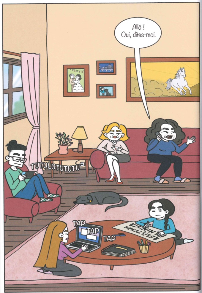 Léa Maurizi poursuit les (més)aventures de la famille déchue. Quand on roulait sur l’or et qu’on n’a plus un kopeck, il faut réapprendre à vivre… et sutout à travailler. Pas facile quand on a passé son temps à se la couler douce en mangeant dans des couverts en argent. Dans son graphisme clair et avec ses personnages caractéristiques qui n’appartiennent qu’à elle, l’autrice se régale et régale à la manière d’un marionnettiste qui tire les ficelles de son petit monde. Un nouveau membre de la famille fait son apparition en la personne de la grand-mère, la mère de Jean-Marc, appelée à la rescousse par Valérie au grand dam de sa propre mère. Cette dernière acceptera-t-elle le secours financier de sa belle-mère ? Tailleur Channel, toutou qui ne doit manger que du haut de gamme, Hortense débarque !