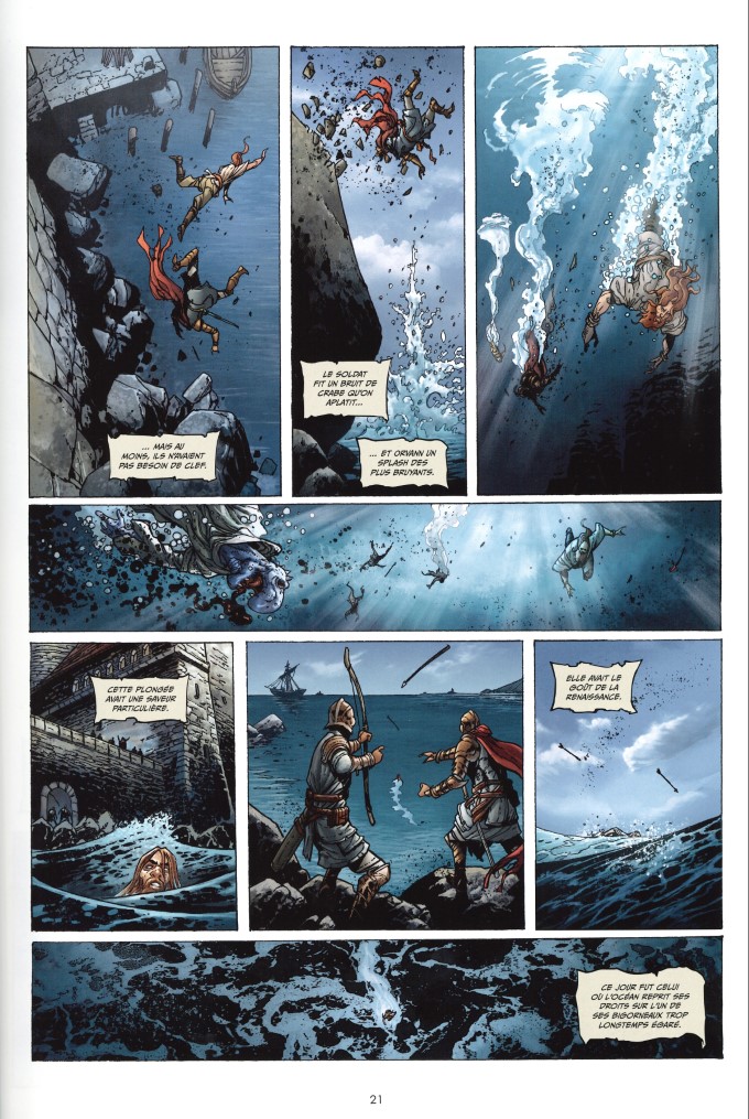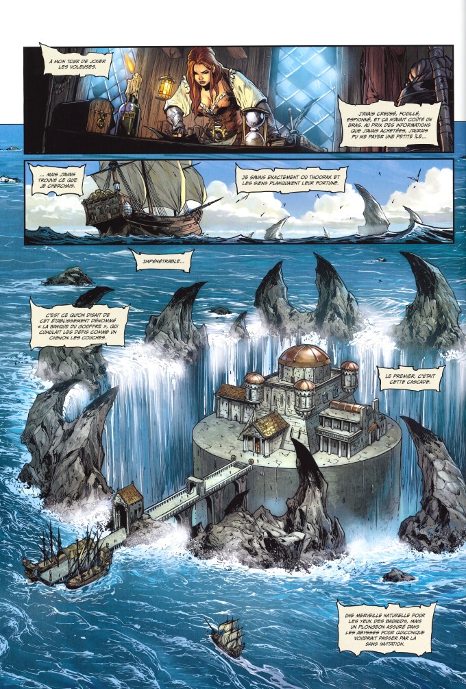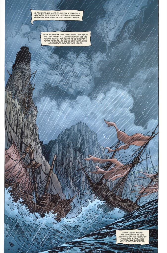 Qui arrêtera Jean-Luc Istin ? Personne, on l’espère. Après avoir dépoussiéré l’héroïc-fantasy dite « classique » avec les séries du Monde d’Aquilon, après avoir donné un coup de vieux à ce clacissisme avec l’improbable et impeccable mixage avec le Western dans West Fantasy, voici qu’il renvoie Jack Sparrow dans les filets en réinventant la piraterie dans une Héroïc-piraterie, ou une Pirate Fantasy si vous préférez, magistrale. Sylvain Cordurié co-scénarise le premier épisode et prend en charge tout seul le deuxième.