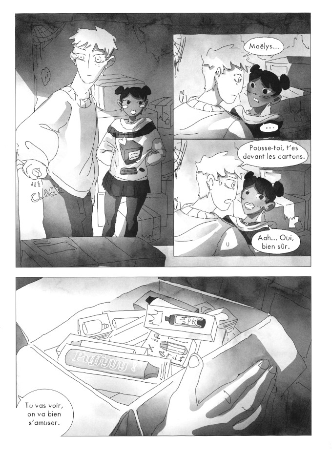 Que l’on vende de la vape goût fraise Tagada, melon ou fruit du dragon, c’est clairement pour cibler les jeunes. Daniel ne voit pas le mal. « De toute façon, tabac et vape sont interdits aux mineurs. » De plus, il en est certain, le vapotage est une alternative à la cigarette pour aider les gens à ne plus fumer. En soirée, Jérémie découvre que la plupart des ados commencent en fait par cela. Il se laisse tenter à essayer ce qui met Maëlys dans une colère noire. La situation est plus dramatique qu’il n’en a l’air. Tout est fait pour inciter les jeunes à s’y mettre. Les influenceurs, sponsorisés par les fabricants, font la promotion des cigarettes électroniques. Ces derniers n’hésitent à utiliser l’iconographie manga pour faire tomber des victimes naïves ou faibles dans leurs filets.