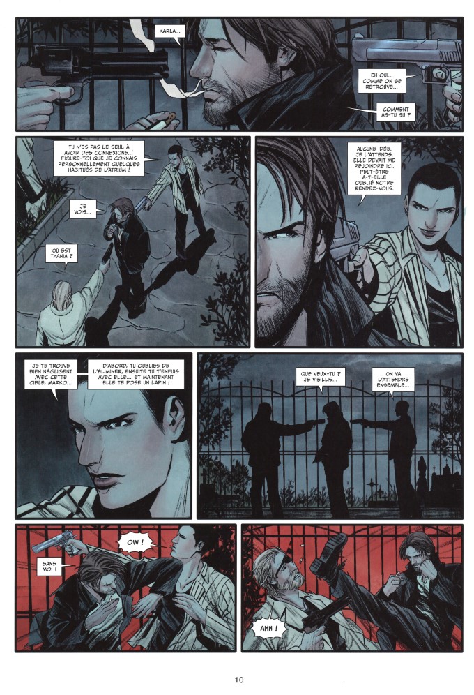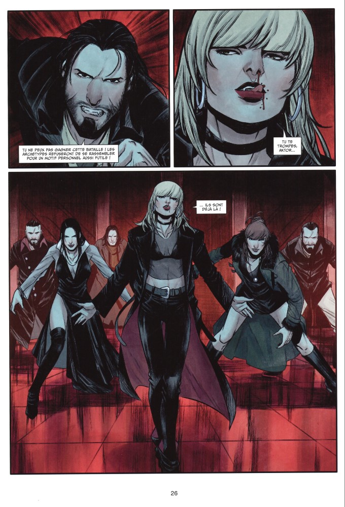 Dans une catacombe archaïque, creusée bien avant que les chrétiens ne songent à percer des tunnels funèbres pour ensevelir leurs morts, Marko et Thania ont rendez-vous avec Aktor. Ils ont besoin du vampire car les sicaires sont aux trousses de Thania. Elle doit se défendre. Elle doit savoir comment elle en est arrivée à sa condition. D’après Aktor, pas sûr que l’expérience soit bénéfique pour elle. Elle est déterminée à la faire. Il faut avoir confiance en Marko qui l’a épargnée alors qu’il était missionné par les sicaires pour l’éliminer. Aktor ne partage pas son avis mais consent à aider son amie. Sorti pour laisser Thania et Aktor parlementer, Marko est menacé par Karla qui veut lui faire payer sa trahison.
