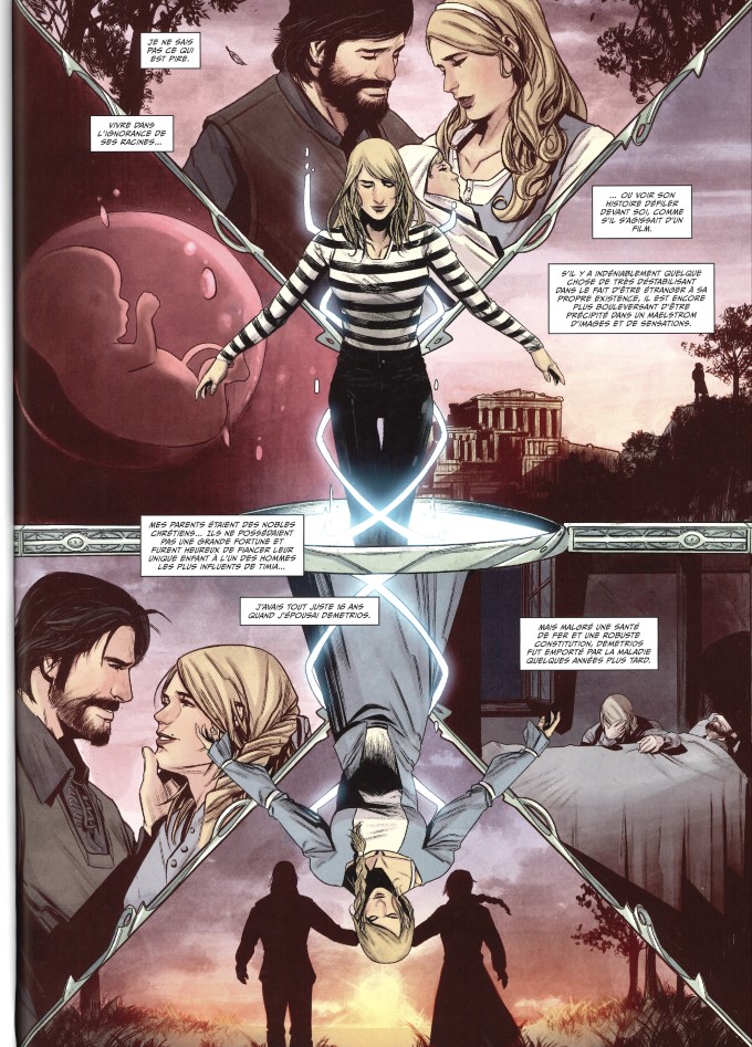 Deux jours plus tard, à Athènes, un miroir très spécial attend Thania. « Cuique suum reddit. » Il donne à chacun ce qui lui appartient. Ce qu’elle cherche, c’est son passé. Celui qui se contemple dans ce miroir contemple sa propre histoire. Dans ce miroir, un humain n’a pas de reflet mais un vampire peut y voir défiler sa vie. Mais cette connaissance a un prix. Tout le monde ne survit pas à l’expérience. Son intensité peut provoquer de gros dégâts dans les liaisons cérébrales. Qu’importe. Thania est prête à tenter le tout pour le tout. Si elle en revient, ce qu’elle apprendra l’aidera-t-il à affronter ses ennemis ?