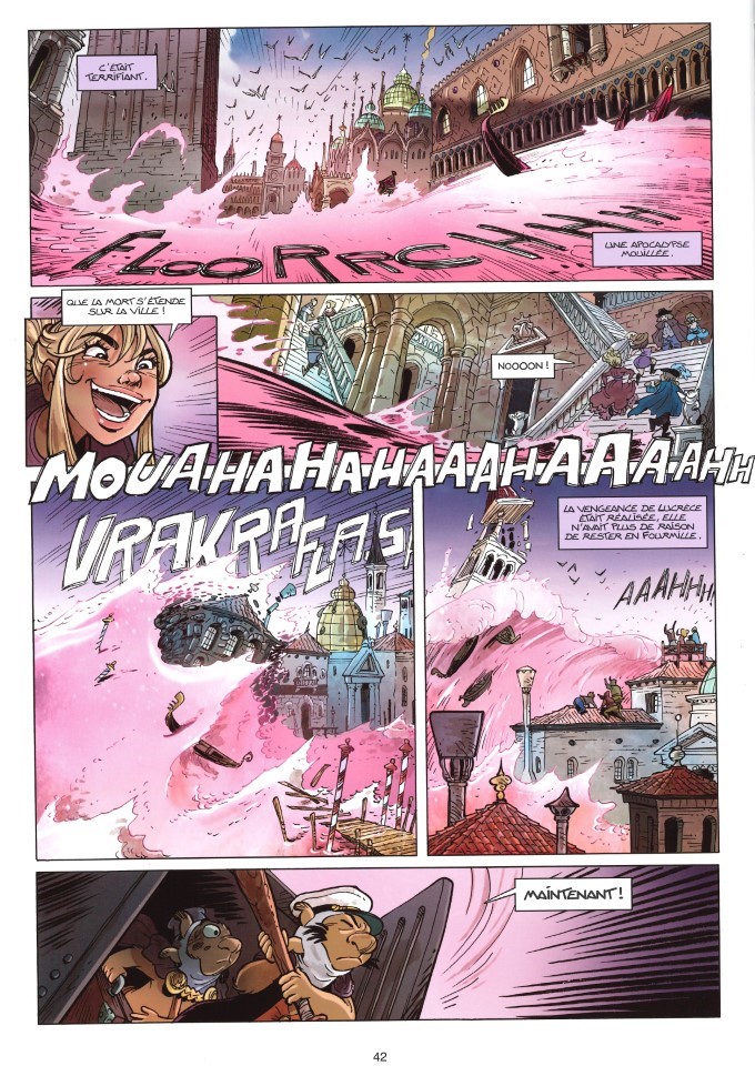 Ekhö monde miroir est une série d’héroïc-fantasy drôle, originale, intelligente et subversive. La marque Christophe Arleston y trouve toute sa spécificité. L’auteur développe son savoir-faire dans des histoires finement menées, avec humour et aventure dans un équilibre parfait. Le scénariste montre son petit côté provocateur, posant les pieds hors des sentiers battus. Là où, dans Astérix, faire parler le pirate Baba avec des « R », c’est du wokisme pur et dur, quand Arleston psychanalyse un personnage homosexuel, c’est rigolo, respectueux, et ça fait avancer les mentalités. Sous les couleurs merveilleuses (comme Venise) de Nolwenn Lebreton, Alessandro Barbucci fait encore une fois des merveilles (comme Venise…du temps de sa splendeur).