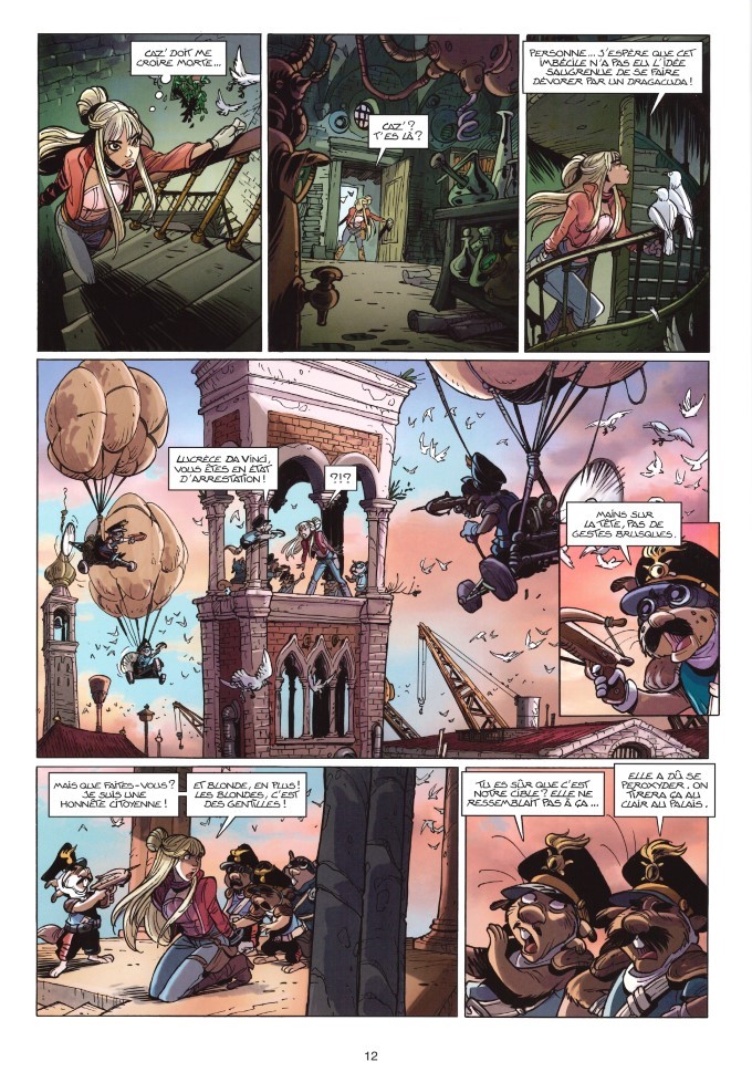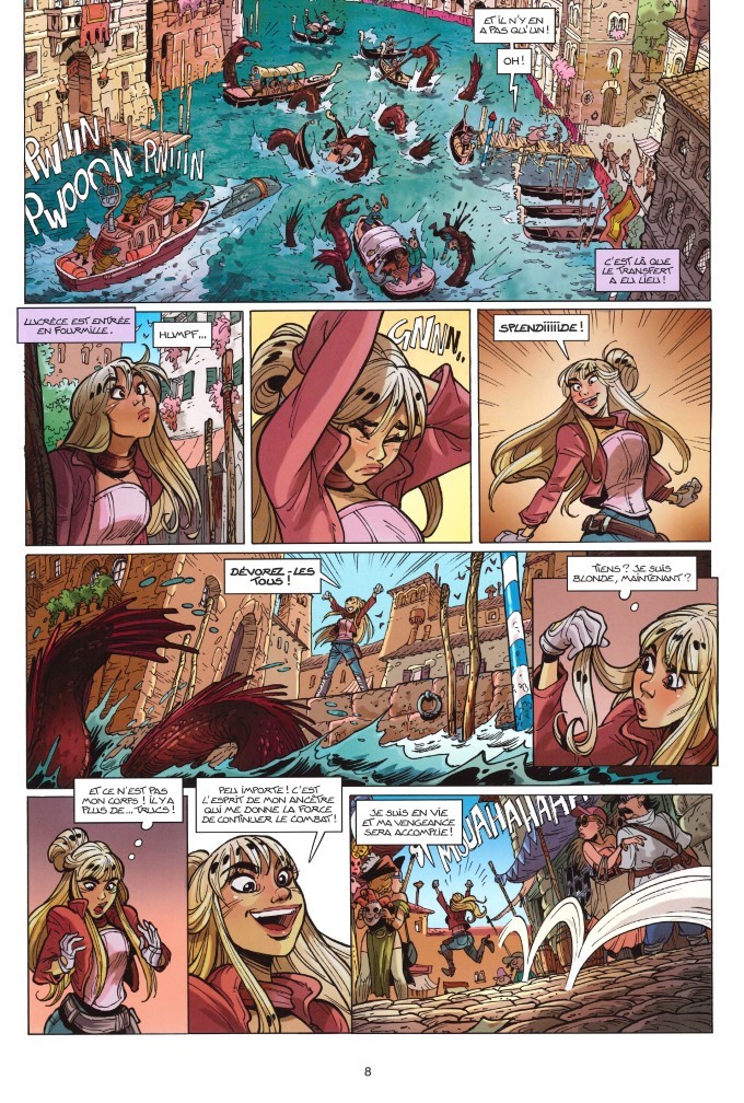 La Sérenissime est menacée. Une démente aigrie nommée Lucrèce, descendante des Da Vinci, menace de détruire Venise. La fourbe a bien l’intention, une fois la rançon obtenue, d’engloutir la cité sous les flots. Lucrèce a préparé une mixture capable d’attirer dans la lagune de terribles prédateurs, des dragacudas de l’Adriatique. Manque de bol, ça tourne mal pour elle et la folle se fait dévorer par les bestioles qu’elle a attirées. A Venise pour signer la célèbre diva Jessye, Fourmille Gratule voit son corps possédé par l’esprit de Lucrèce, qui trouve là l’occasion de finaliser ses plans machiavéliques. Sigisbert de Motafiume, le preshaun chargé de veiller à l’équilibre du monde miroir, raconte l’histoire à la sérenissime pontife. Cleto Farnese et Hugo ont-ils accepté de l’aider à résoudre le problème ?