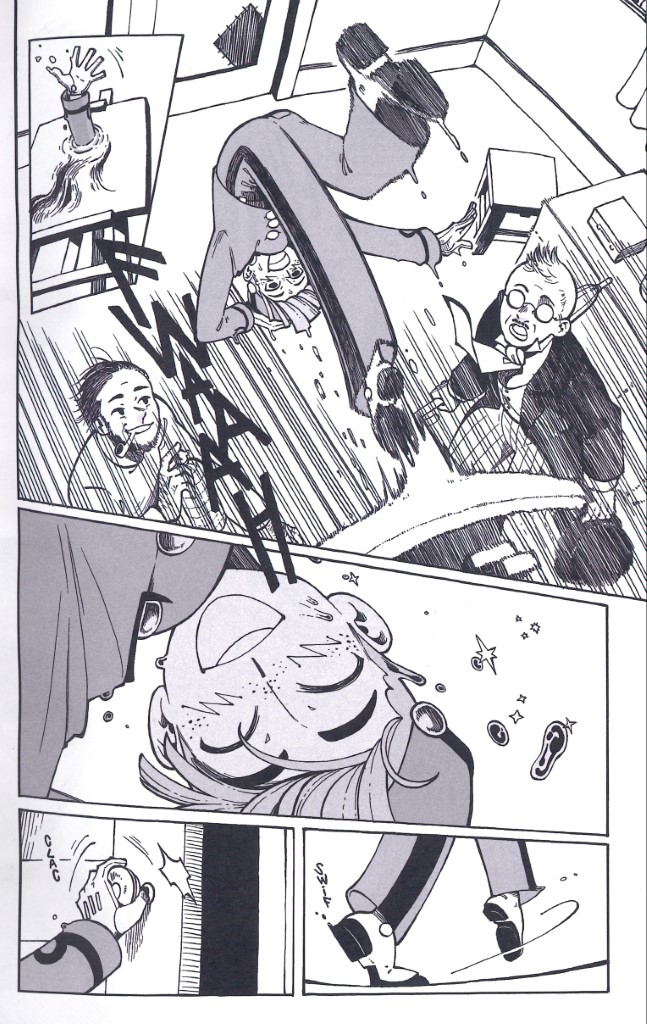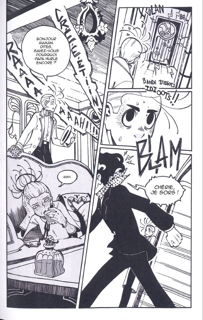 Manapany est une mangaka indépendante. C’est dans une convention manga que j’ai déniché ce petit manga auto-édité. De ¾ dos, Spirou dégouline de rouge. La quatrième de couverture intrigue : « Hé, petit ! Tu saignes ! Non, c’est… c’est… de l’aquarelle. » L’intérieur est en noir et blanc. Quel est donc cet ovni ? Seltzmann est tout simplement le plus bel hommage qui n’a jamais été fait à Spirou. La lecture ne trompe pas. Manapany connaît très bien le personnage et son histoire, rebondissant sur ses origines. Elle met Spirou en abime, l’abime même, le psychanalyse, lui fait prendre conscience de sa condition réelle. Seltzmann est plus qu’une histoire de Spirou, c’est une prise de conscience de la différence, c’est une invitation à la tolérance, un récit qui donne envie de se connaître et de s’assumer.