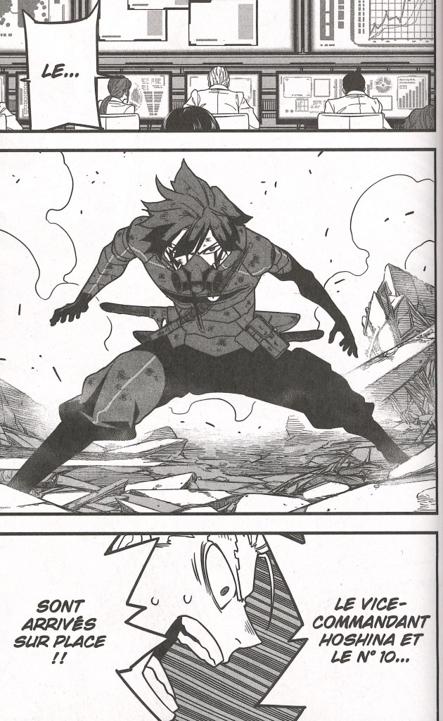 Le vice commandant Hoshina est le premier à arriver sur place. Seul, il ne parviendra pas à bout du monstre. Son meilleur ennemi d’unité débarque à son tour : le commandant Narumi vient lui prêter main forte. Sous l’œil de Mina Ashiro, le triel s’annonce sans merci. Le sang va couler. Parviendront-ils à bout du Kaïju n°9 et sauveront-ils le Kaïju n°8 de la mort ?