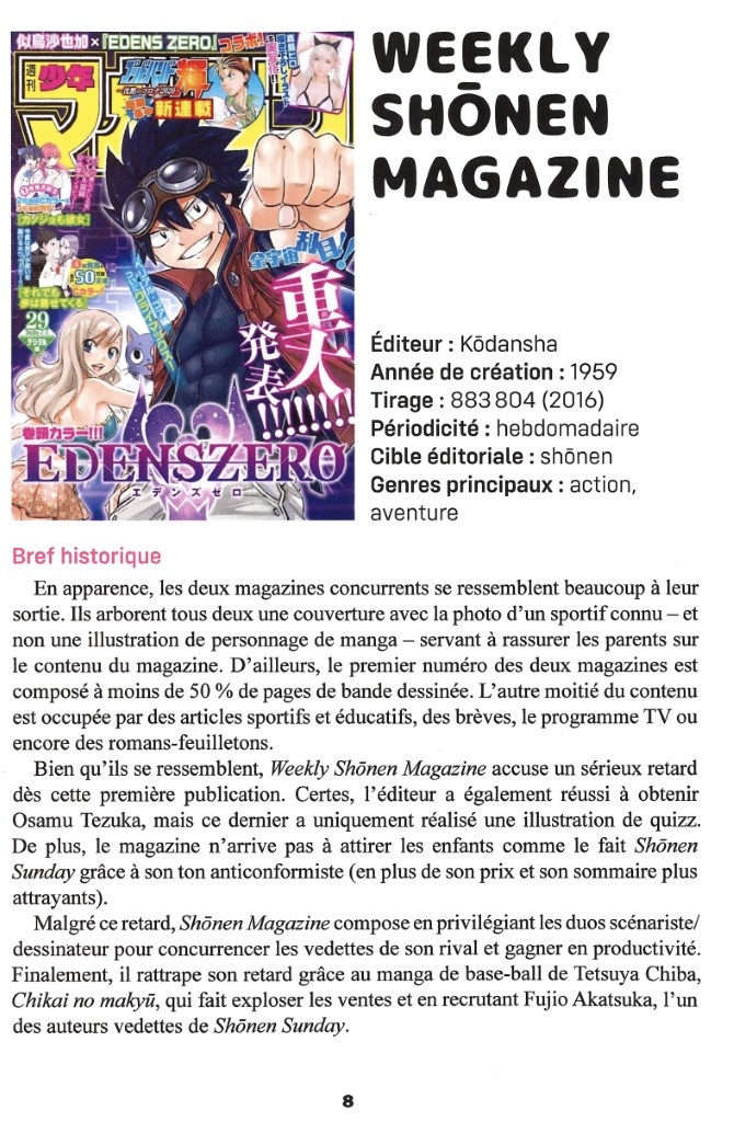 « Les magazines de prépublication -ou mangashi- sont au cœur de l’industrie du manga ua Japon. Pourtnt, en France, ils sont totalement absents. Pas de Shônen Jump, de Ribon ou de Big Comic dans nos kiosques. Cette absence est d’autant plus étonnante que nous sommes le deuxième pays consommateur de mangas après le Japon et que le marché connaît une croissance fulgurante depuis 10 ans. Comment expliquer ce paradoxe ? Pourquoi ces magazines n’ont-ils jamais trouvé leur place en France ? »