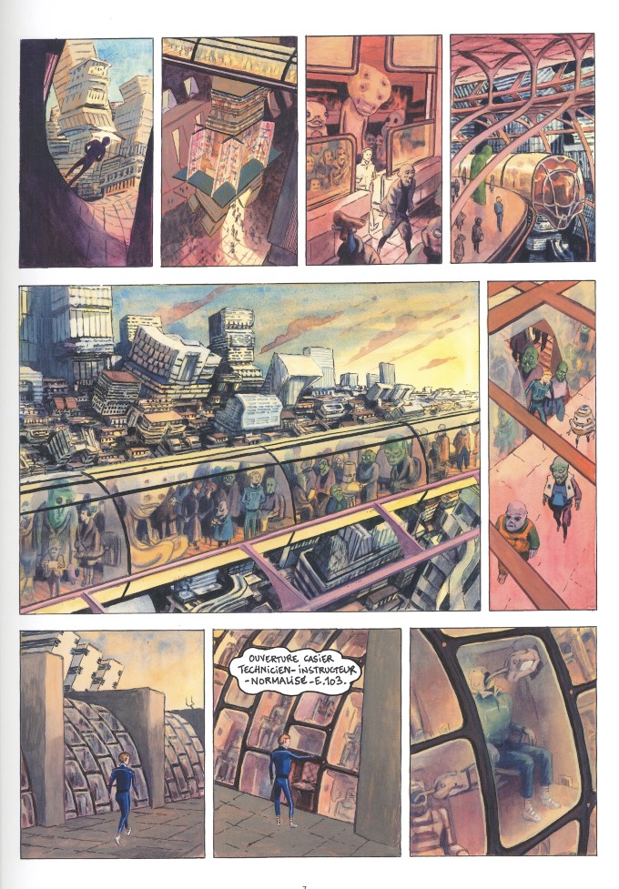 Ben City. Galaxie Nord-Ouest. Siège du Canon. Population d’environ 350 millions d’habitants, composée principalement d’humanoïdes augmentés et d’humains assistés par ordinateur. Quelques réfractaires tentent de s’opposer à la pensée unique. Parmi eux, trois « insuffisants » ont subtilisé un artefact. Deux opérateurs sont à leur poursuite. Avant d’être repéré, le trio balance son larcin dans un sac-à-dos dans le fleuve. Le lendemain, l’androïde Tin-3.103 trouve le sac. Il l’ouvre et découvre un buste, une sculpture de la fin du XVème siècle terrien, façonnée à la main, à l’image d’une femme réelle. Monsieur Alain, un professeur, lui apprend que la confection de l’objet est un cas de mimesis, une notion philosophique ancestrale consistant à imiter un objet de la nature. Le sujet n’est pas la beauté mais la façon de représenter le sujet. C’est une véritable création. On appelle ça une œuvre d’art.