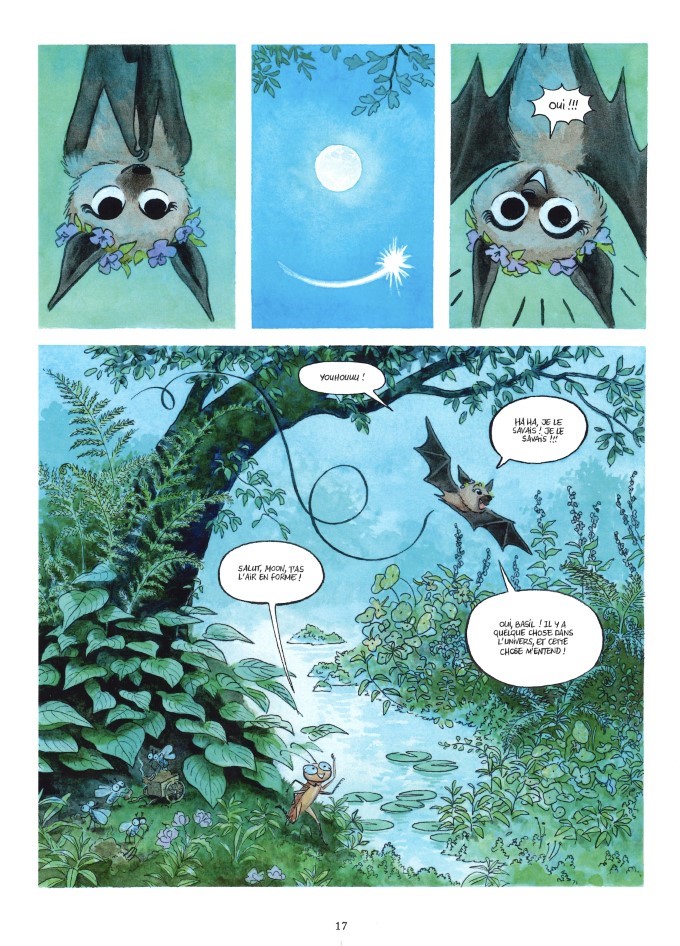 On pourrait prendre Au chant des grenouilles pour de la BD pour enfants lue par les adultes. Ça peut. Mais ça doit surtout être découvert par les plus jeunes qui pourront ainsi être envoutés comme on l’a été avant eux, à l’époque où il n’y avait pas d’écrans à gogo. Ils comprendront ainsi ce qu’est une bande dessinée aussi belle que bien.