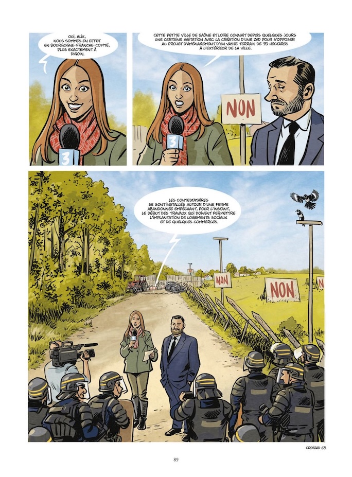 Désemparé, paniqué, le comte rentre essoufflé annoncer la mauvaise nouvelle à son épouse, Jeanne-Baptiste ! Quoi ? Rejetant cette idée, elle décide de se battre pour empêcher la réalisation de ce projet immobilier ! Mais devant le refus de soutien de la municipalité, de l’avocat de la bourgade, de la presse locale n’y voyant aucun intérêt, comment se faire entendre et résister ? Charlotte et Côme, les deux enfants du couple, sont prêts à tout pour mener ce combat avec leurs parents. Pourtant, cela pourrait ne pas être suffisant ! La solution viendra de leur locataire, monsieur Vermandois ! Pour cela, ils devront faire appel à une véritable légende de la lutte urbaine et sociale : de mai 68 à la Sorbonne, à mars 96 pour les sans-papiers, en passant par juillet 75 sur le plateau du Larzac et novembre 86 avec les étudiants ! Son nom … Tancrède ! Apprenant le nom du promoteur immobilier, Gérard de Ridefort, ce dernier accepte d’aider les Valence. Il va même plus loin, lui proposant d’appeler à la rescousse quelques amis … Ainsi va débuter le combat pour la « zone à défendre » … la ZAD … la CroiZAD !