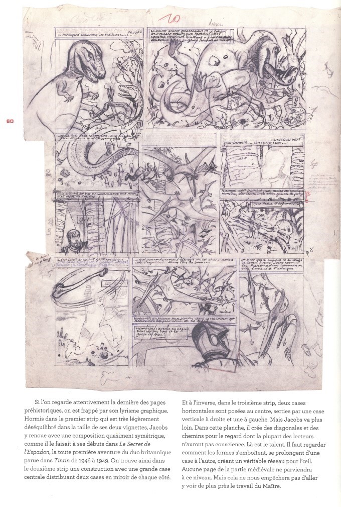 Diabolique ! C’est justement le titre du somptueux ouvrage orchestré par Eric Dubois et Thierry Bellefroid. Les auteurs nous emmènent aux sources de la création de l’aventure du voyage dans le temps du professeur Mortimer : Le piège diabolique. Pour cette sixième histoire du duo, le scientifique la joue donc solo avec la machine du Professeur Miloch. Jacobs étant on ne peut plus conservateur, il a gardé tous ses documents de travail : brouillons de scénario, recherches de titre, croquis, repérages et photos des décors choisis, processus de création,… On est dans le cerveau du maître, et on va avoir de la peine avec lui quand va tomber la décision de la commission de censure interdisant l’album en France pour cause de violence et d’images hiddeuses. Il ne paraîtra que cinq ans plus tard, en 1967. Tellement ahurissant quand on apprend ça aujourd’hui avec le recul. Jacobs en restera meurtri. Le livre ici présent est sublime. Le travail éditorial, de maquette, de fabrication et d’impression est tout simplement merveilleux. Indispensable non seulement à tous les amis de Jacobs, mais à tous les amateurs de l’Histoire de la BD franco-belge.