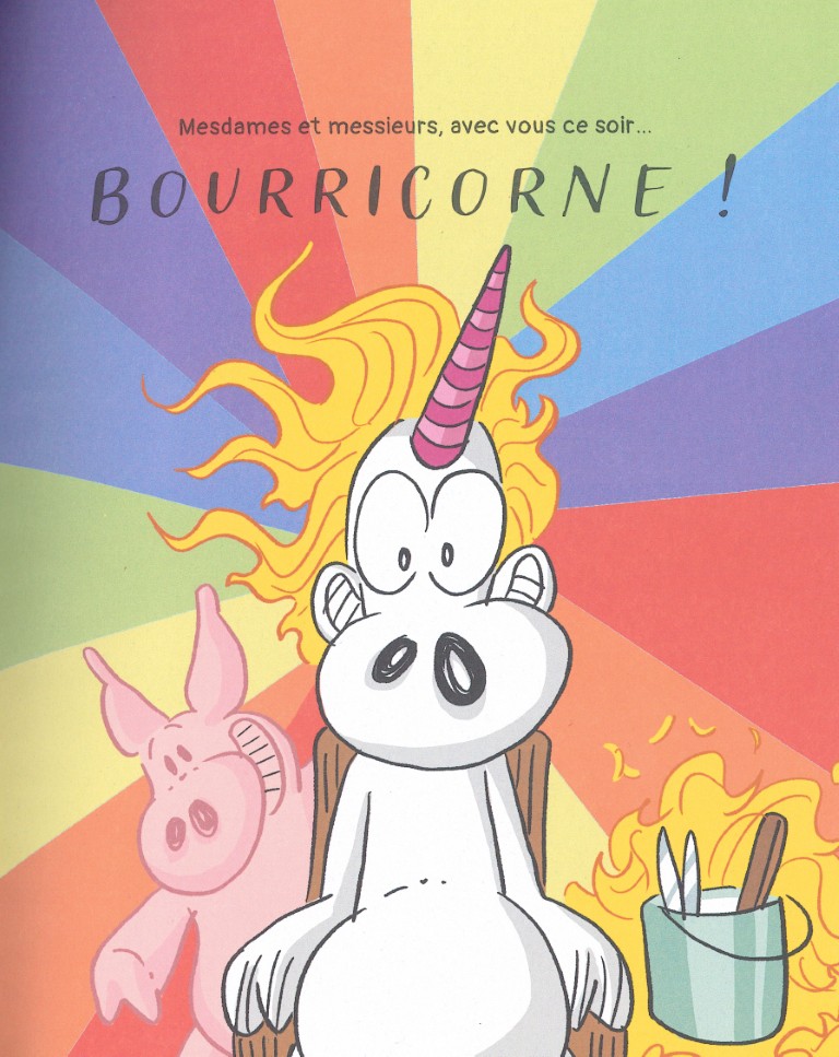Son CV conquiert le Cirque des Merveilles. Il leur a dit qu’il était une licorne. A présent, il va falloir assumer. Camélia va le coacher pour faire de lui un expert en licornes. Niveau culture, Bruno ingurgite tout un tas de bouquins. Niveau déguisement, avec la crinière de l’étalon Osvaldo et une corne d’Allégresse, la plus vieille chèvre de Bellevue, ainsi que de la peinture blanche et un peu de maquillage, ça devrait faire l’affaire. 99 % bourricot, 1 % licorne, c’est Bourricorne ! Dès les premières représentations le public est conquis, surtout les scolaires, dont fait partie Frida, la petite fille la plus intelligente de l’école. Bruno va rapidement découvrir qu’il n’est pas le seul animal à se faire passer pour une créature fantastique