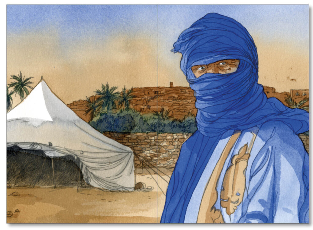 « Errer dans une ville fantôme où se cache la plus vieille bibliothèque du monde, pénétrer dans des tombeaux de plus de 2 000 ans enfouis dans le sable brûlant, bivouaquer avec les chameaux en contemplant le ciel, le bonheur d’un thé parfumé dans la Guelta d’Archeï…