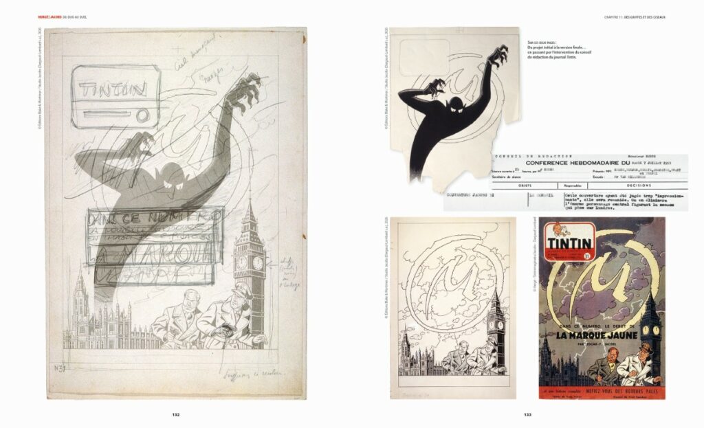 Septembre 1946 est un mois historique. C’est le lancement du journal Tintin et le démarrage du Secret de l’Espadon, première aventure du Capitaine Francis Blake et du Professeur Philip Mortimer. Tintin, lui, s’apprête à visiter le Temple du Soleil. En 1947, Jacobs, qui s’était vu refuser sa co-signature sur Le temple du Soleil et ne voulant pas devenir un homme de l’ombre comme le sera Bob de Moor, prend son indépendance. Hergé aurait-il pris ombrage du succès grandissant de Blake et Mortimer ? Les années suivantes seront compliquées pour le créateur de Tintin, surtout sur le plan sentimental. Jacobs ne manquera pas de lui donner son avis dans une correspondance. Puis viendront les années d’or, avec le succès des Studios Hergé, notamment dans l’aventure lunaire, et de Jacobs avec l’aventure égyptienne. Par la suite, si le triomphe d’Hergé le met sur le devant de la scène, Jacobs reste plus discret. Il sera plus tard très meurtri par la censure en France du Piège diabolique. Hergé le soutiendra. Un dernier chapitre revient sur les dernières années et la disparition des deux hommes avant qu’un épilogue apporte des regards croisés sur leur exceptionnelle collaboration.