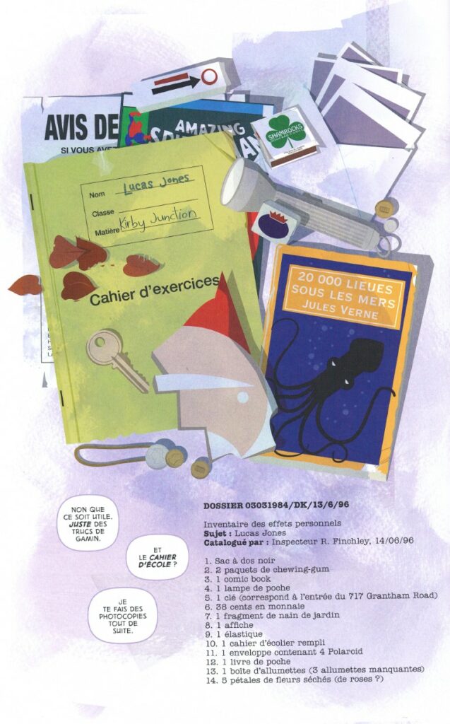 « -Ok… Lucas, dis-moi, tu comprends pourquoi tu es ici ? Tu as été porté disparu pendant longtemps. Très longtemps. Que vois-tu ? Deux photos. De toi. L’une prise juste avant ta disparition. L’autre ce soir. Je veux juste savoir… Enfin, moi et tous les messieurs de l’autre côté de la glace voudrions savoir… Comment se fait-il que tu n’aies pas vieilli d’un seul jour en douze ans ?