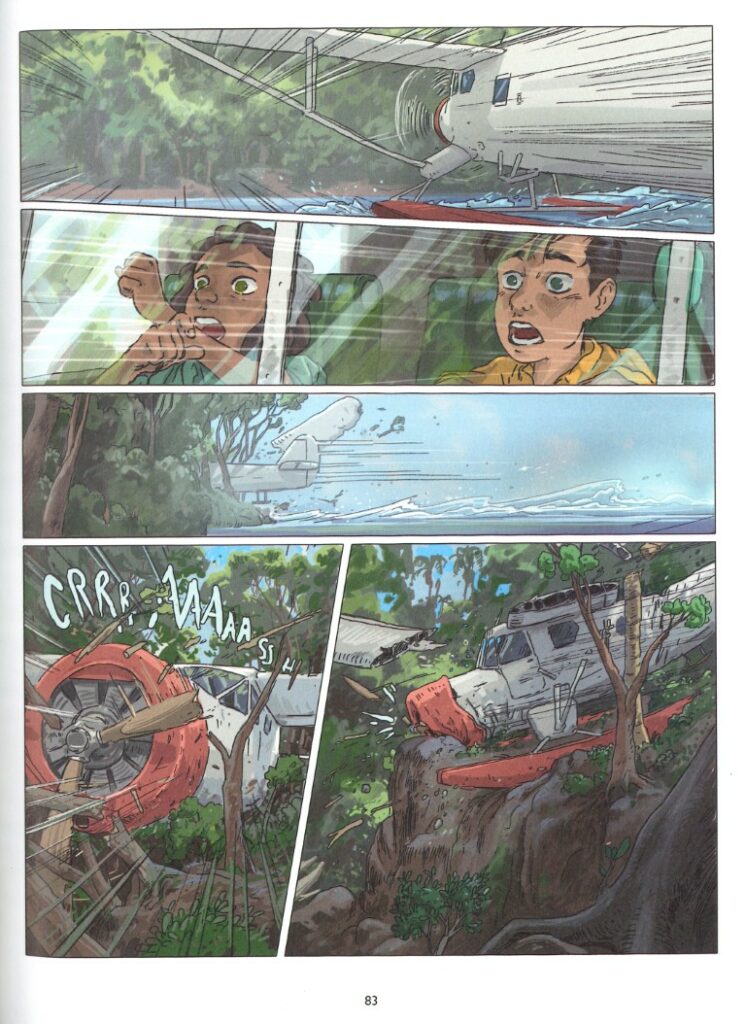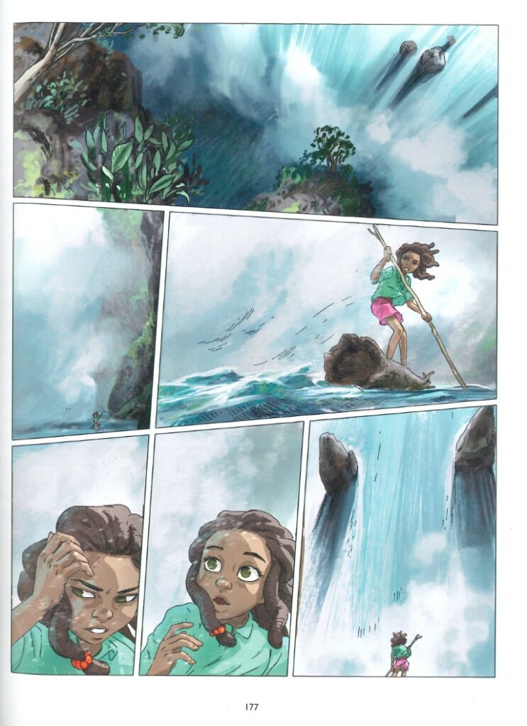 Daniel et James Clarke, accompagnés par Daniel Snaddon, ont réuni tous les composants nécessaires pour réaliser une grande aventure comme on en fait rarement. Kariba a tout du grand spectacle comme on en voit encore parfois au cinéma, comme on en lit encore de temps en temps, et qui réunit les générations. Là où le jeune lecteur verra la quête d’une gamine aux pouvoirs magiques qui recherche son père dans un décor majestueux, les adultes décèleront les conséquences ravageuses de la construction d’un barrage hydraulique. Par la métaphore de Nyaminyami, poisson-serpent géant, les auteurs dénoncent la colonisation d’un peuple qui ne demandait rien à personne. Dans la préface, ils revendiquent leur volonté de présenter une œuvre de fiction, accompagnant l’Histoire comme on peut accompagner un rêve au réveil, en finissant par faire sens.