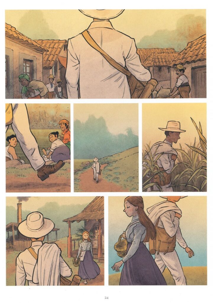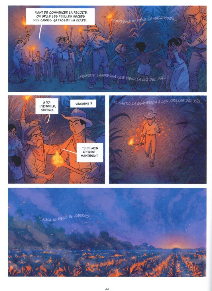 Sur plusieurs années, on va suivre la vie de l’exploitation de canne à sucre au rythme des bonheurs et surtout des drames familiaux, au pas d’un monde en pleine mutation où l’ouvrier n’est plus un instrument justement « exploité » et où les tensions sociales commencent à faire du bruit. Eva incarne la nouvelle patronne, sûre d’elle, marchant à la fois sur les traces de ses parents tout en se projetant vers le futur et la modernité. En filigrane de tout ça, il y a cette histoire de trésor que l’on voit en première planche -rêve ou réalité ?-, dont on entend ensuite peut parler et dont on découvre dans un final poignant s’il est une chimère ou pas. Il est en tout cas l’étincelle sans laquelle l’histoire d’amour entre Severo et Serena n’aurait jamais eu lieu.