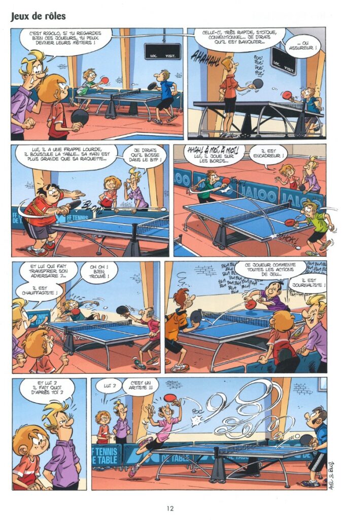 Bloz et Axel, père et fils, s’amusent autant qu’ils amusent avec cette série de gags-passion, pas exclusivement réservée aux pongistes. Ça donne vraiment envie de s’y (re-)mettre.