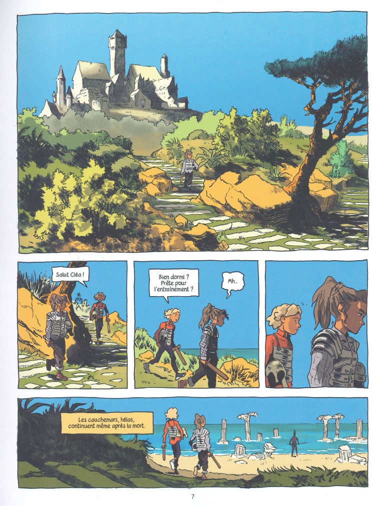 Cléa se réveille après un cauchemar et parle d’elle au passé. Et pour cause, elle est morte et vit dans le Manoir. Morte ? Vit ? Ce n’est normalement pas possible, mais dans le Manoir, oui. En effet, les habitants du Manoir sont morts et vivent dans cet espace étrange. Le cauchemar de Cléa n’est pas imaginaire et lui rappelle dans des souvenirs flous comment elle en est arrivée là. Elle s’appelait Cléa Villeste. Elle a été kidnappée sur le chemin du collège à Brest, séquestrée, puis assassinée. Remise de ses émotions, Cléa retrouve Liam pour un entraînement au combat avec Léonidas, roi de Sparte, héros de la bataille des Thermopyles. La séance est vite interrompue par « le Sauve-qui-peut », la cloche signalant l’arrivée d’un nouvel occupant au Manoir, et dont il faut toujours se méfier.