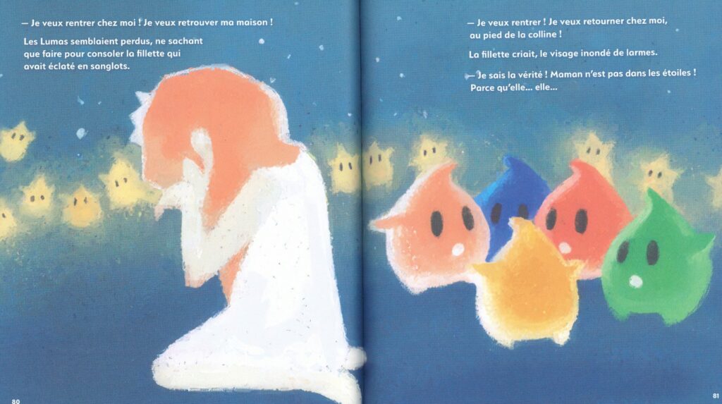 Sorti récemment en salles, le film Super Mario Galaxy est l’adaptation des jeux vidéos Super Mario Galaxy 1 & 2. La princesse Harmonie est la sœur aînée de Peach. Elle élève des Lumas, ces étoiles kawaïs, à bord de l’Observatoire des Comètes. Elle va être enlevée par Bowser Junior. Comment s’en sortira-t-elle ? Pour ça, il faut aller voir le film. Pour savoir comment Harmonie a rencontré pour la première fois une Luma, il faut lire ce livre, joliment édité dans la collection Soleil Manga.
