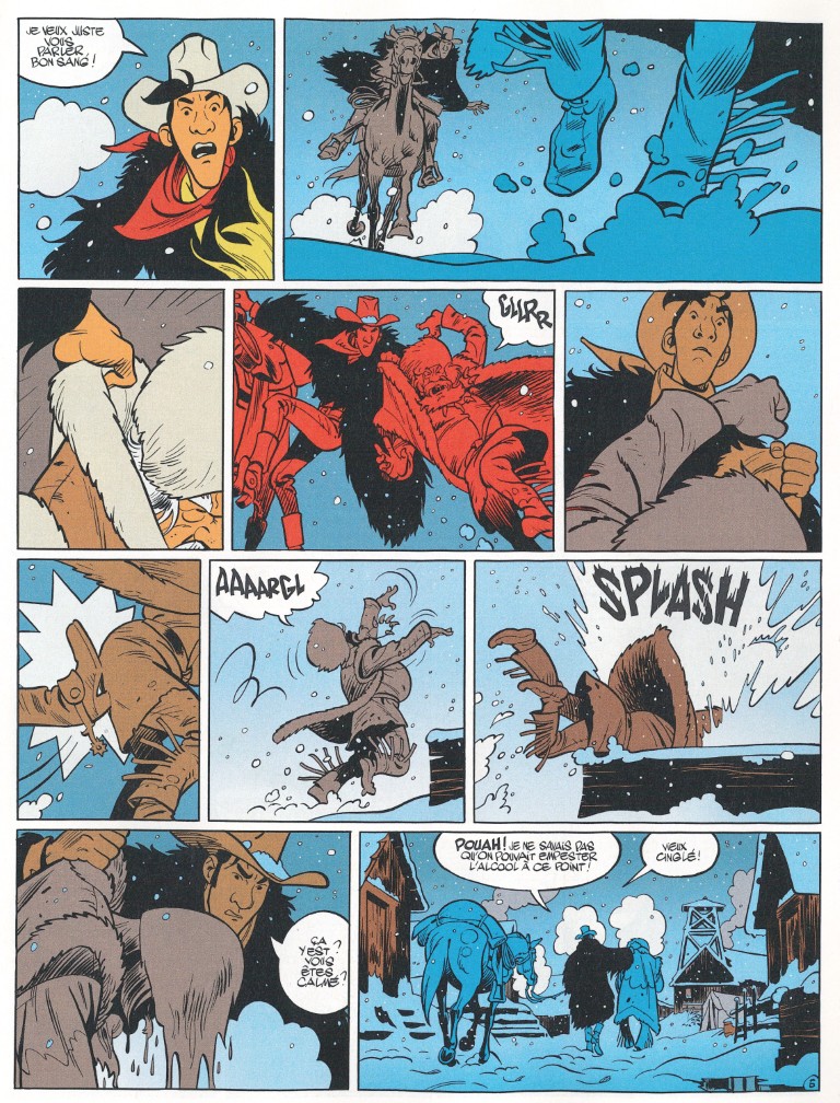 Voici la troisième aventure semi-réaliste de Lucky Luke réalisée par Matthieu Bonhomme. Blueberry a eu sa longue marche, c’est au tour de Lucky Luke d’accomplir la sienne, dans les étendues enneigées du Minnesota. Pour la première fois, l’auteur met les Dalton en scène. On pensait l’entreprise impossible car immerger des personnages hautement humoristiques dans un univers qui se veut plus proche de la réalité, ou tout du moins de la plausibilité, de ce qu’ont fait Morris et Goscinny, semblait incongru. C’était impossible, donc Bonhomme l’a fait. Et avec quel talent. Joe et Averell gardent leurs caractéristiques tout en restant crédibles dans ce nouveau cadre. Au niveau de la colorisation, le challenge était tout aussi complexe à relever. Le dessinateur-coloriste maîtrise complètement la technique Morris des aplats chocs. Lucky Luke sans ces codes couleurs, ce ne serait plus Lucky Luke.
