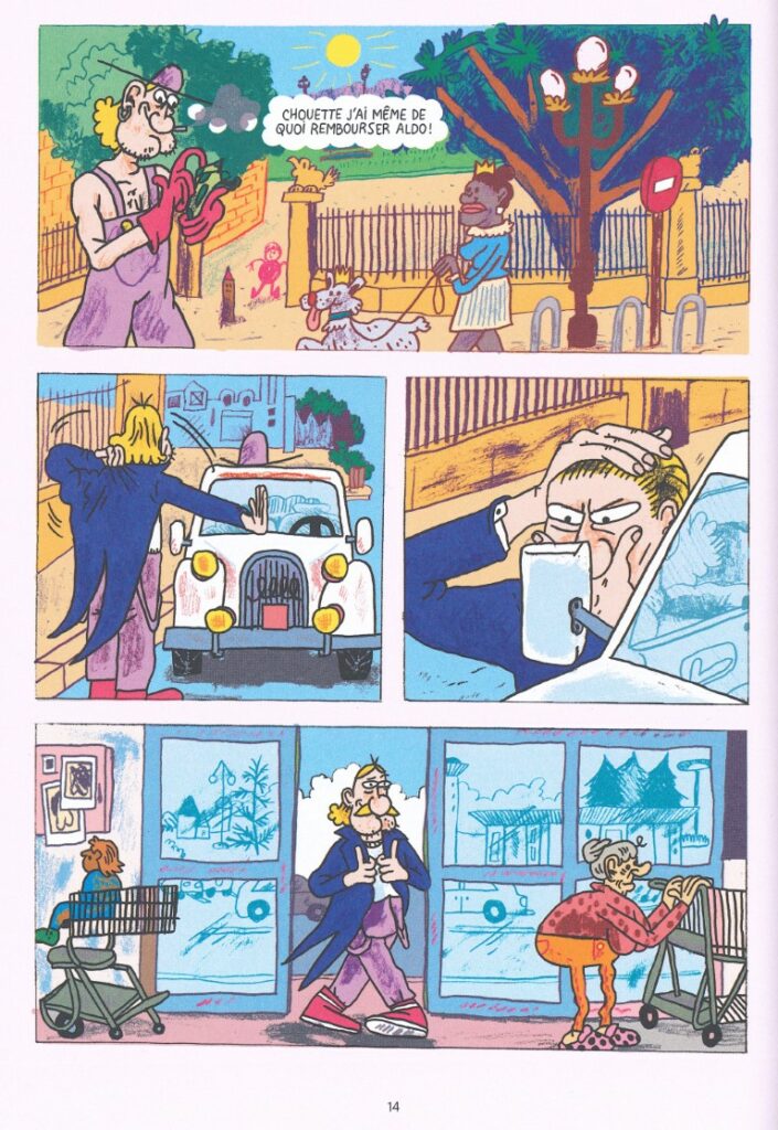 Aucun album d’Emilie Gleason ne ressemble au précédent. Junk Food dénonçait la malbouffe. Robbie, histoire de zombie, dédramatisait la mort. J’perds pas la boule racontait la vie du footballeur Vikash Dhorasoo. Bichette revisite Léon de Luc Besson…sauf que Gui n’est pas un tueur et la gamine n’a rien de Nathalie Portman, d’ailleurs ce n’est même pas une gamine. En fait, Bichette n’a rien à voir avec Léon. Bichette et Gui sont sous l’emprise l’un de l’autre. La jeunette profite du savoir-faire du jardinier. Celui-ci trouve avec elle un nouveau cadre soignant ses soucis actuels. Emilie Gleason met beaucoup d’elle-même dans ses albums et c’est certainement pour ça qu’ils sont aussi sincères. On le sait depuis Ted, drôle de coco. Elle a vécu sous emprise. Bichette est sa catharsis où elle distord la problématique. Son trait underground pose des personnages sales et attachants dans des décors qui n’appartiennent qu’à elle, jusqu’à un final imprévisible.
