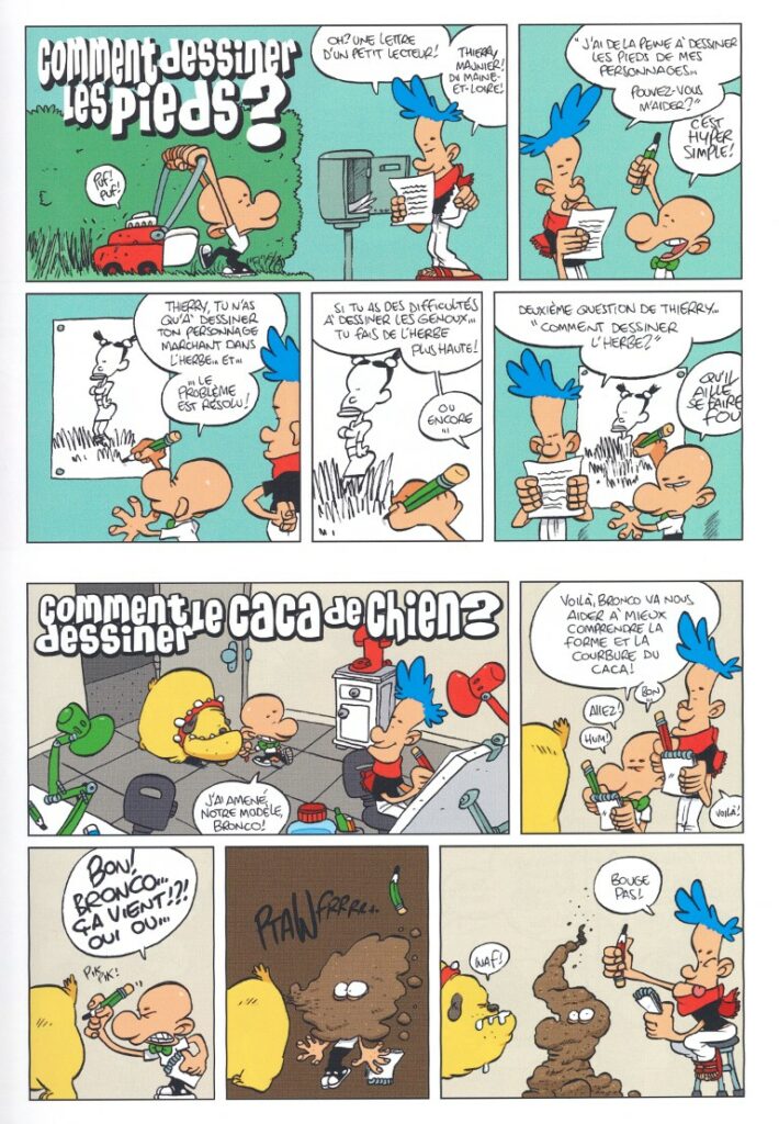 En parallèle à ce retour musclé du Captain Biceps, les éditions Glénat rééditent la méthode de dessin des mêmes auteurs Zep et Tebo. « Comment dessiner ? » vous donne 50 trucs pour devenir un as de la BD, et si avec ça vous n’y arrivez pas, c’est que vous n’êtes pas doué. L’album initialement sorti à l’italienne revient en format classique avec deux pages bonus inédites consacrées au dessin animé. Pêle-mêle, vous n’aurez plus aucune difficulté pour dessiner des mains, des filles, un slip, des muscles, un caca de chien, un bruit. Vous saurez aussi quel outil est le plus adapté à votre objectif : crayon, plume ou pinceau. Zep et Tebo se mettent en scène et donnent tout pour nous faire poiler… jusqu’à apprendre à dessiner les vieux à poil.
