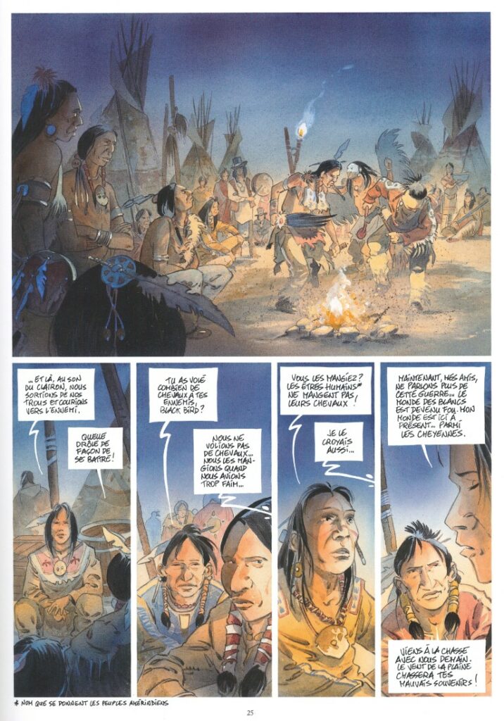 Cheyenne est le huitième récit que Patrick Prugne consacre aux indiens d’Amérique du Nord. Il confirme ses performances de dessinateur et de coloriste dans un récit que l’on aurait préféré qu’il ne soit qu’une fiction. Dramatiquement historique.