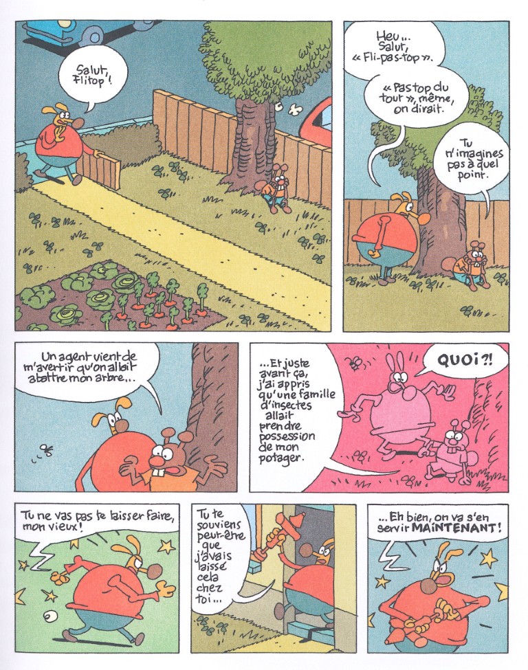 « -Salut, Flitop ! Heu… Salut, « Fli-pas-top ». « Pas trop du tout », même, on dirait.